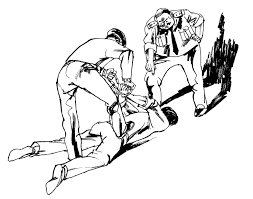 fait que j’étais menotté, et malgré le sang qui coulait de mon nez et de ma