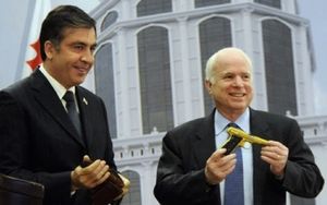 | Mikheil Saakachvili et John McCain à l’époque de leurs activités subversives en Géorgie. |