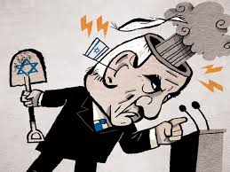 « Si Benjamin Netanyahou n'était pas entré en politique, il serait à Broadway, que l’on qualifierait de méchant pantomime. Le Premier ministre belliciste d'Israël est théâtralement odieux au point que même ses alliés les plus fidèles d'Israël dans la communauté juive américaine l'exhortent à se calmer. C'est le genre de gars qui non seulement se présente chez vous sans y être invité, mais qui, en plus, apporte son linge sale, vide votre frigo, urine dans votre évier puis sort brusquement en se plaignant de votre maison dégueulasse ».