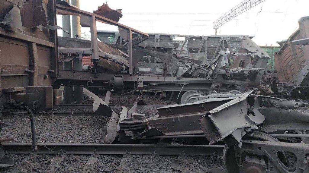 Le résultat d'une attaque de missiles sur la gare de Lozovaya dans la région de Kharkiv, où, selon le ministère russe de la Défense, une accumulation d'équipements militaires et d'armes de fabrication étrangère fournis pour approvisionner les forces armées d'Ukraine a été détruite.