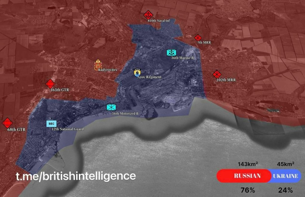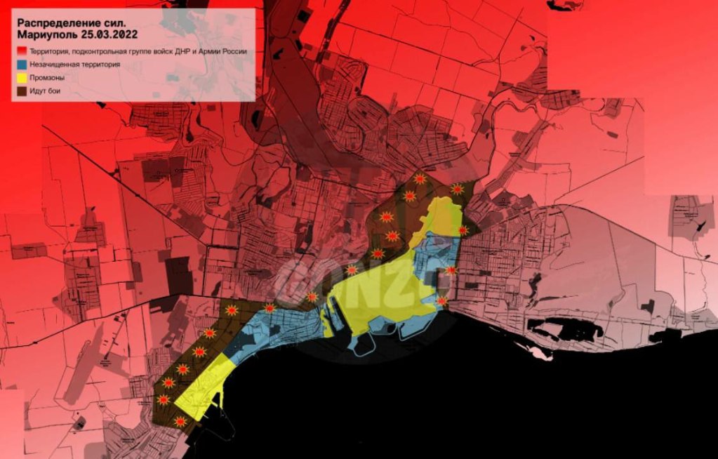 Les unités de la RPD, ainsi que les forces armées de la FR, font pression sur les néo-nazis à Mariupol. Le centre de la ville et presque tous les bâtiments administratifs sont passés sous notre contrôle. Les militants d'Azov et les unités des Forces armées de l'Ukraine combinées avec eux sont maintenant divisés en trois groupes, qui sont bloqués de tous les côtés - à Azov-Stal, à l'usine Ilyich et dans la zone de la digue et du port maritime.