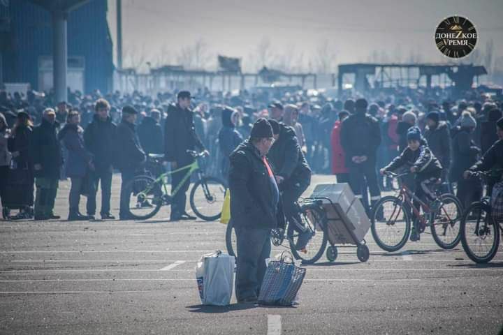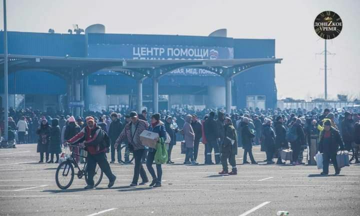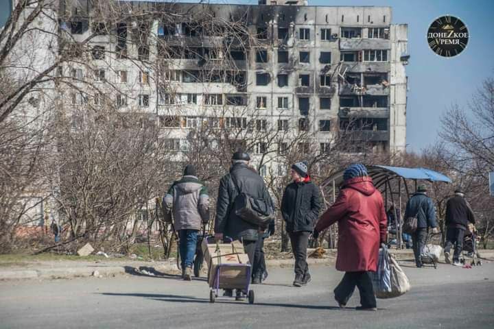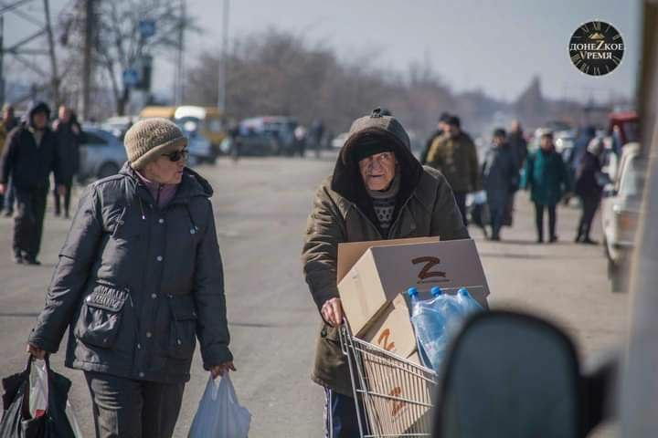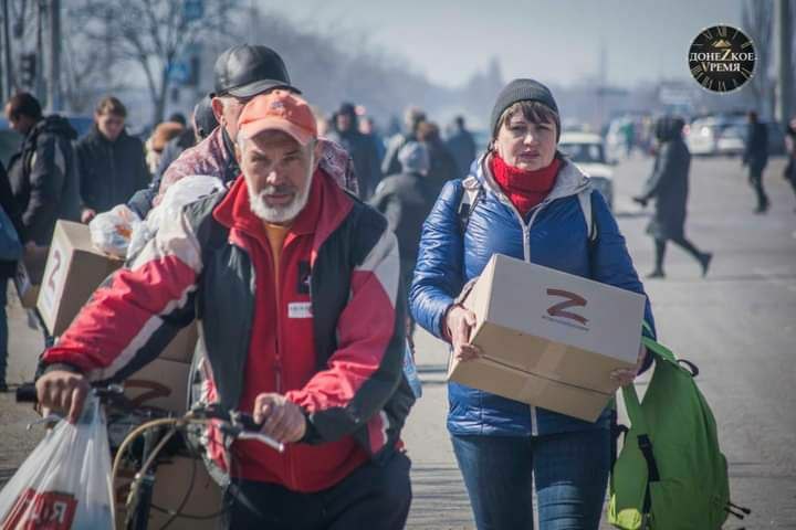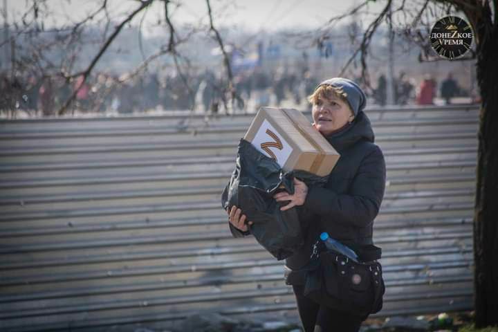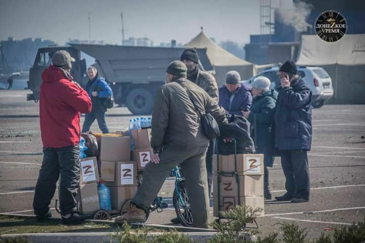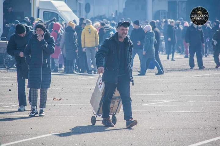 Images de RIA Novosti depuis Mariupol. Ci-dessous, un point de distribution de l'aide humanitaire.