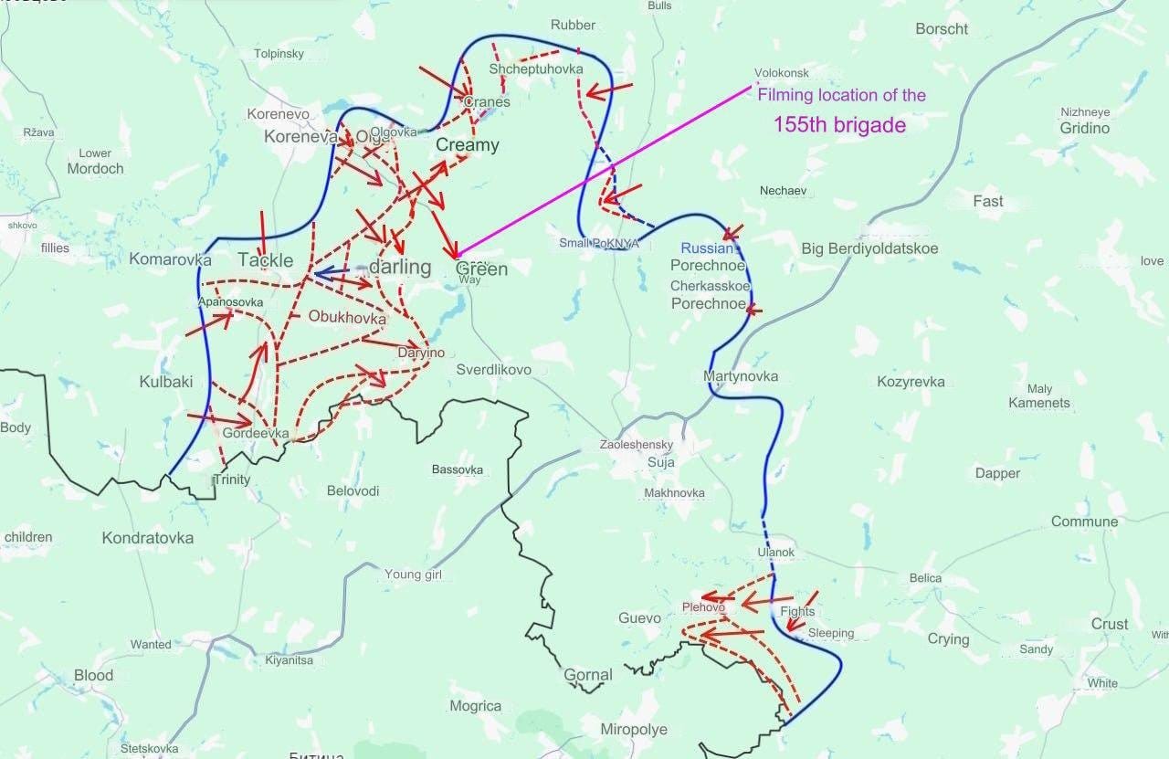 Comme on peut le voir ci-dessus, l’offensive a été principalement menée par les 155e Marines qui ont pris d’assaut depuis la direction de Korenovo au nord-ouest, réduisant encore une fois les possessions ukrainiennes sur le territoire russe.