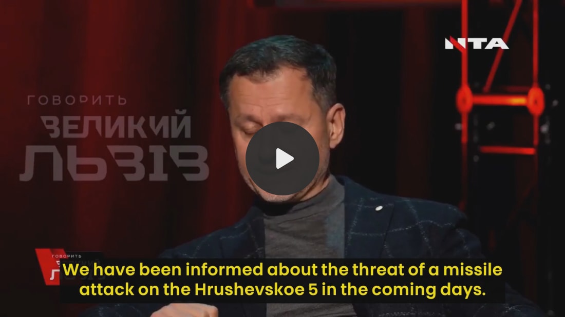 Député de la Rada Batenko : Les informations qui viennent de nous parvenir sont qu’il existe une menace d’attaque de missiles sur Grushevsky, dans les prochains jours. Il s’agit du parlement ukrainien. Je vois que Poutine a fait monter les enchères autant que possible.