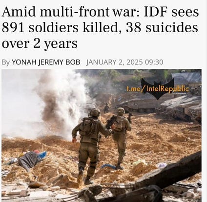 Récemment, on a appris que 4 % des morts parmi les soldats de l’armée israélienne étaient des suicides :