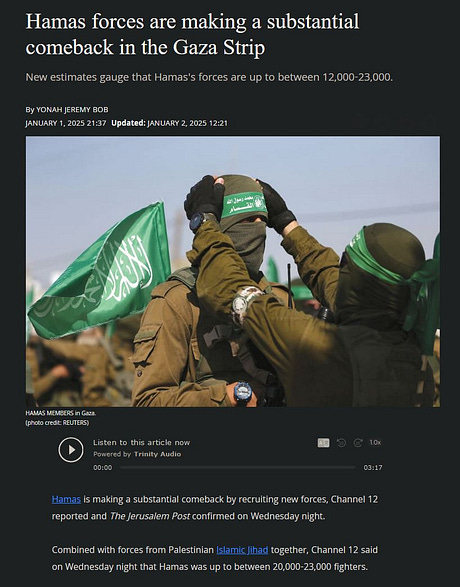 Mais oui bien sûr, "grande victoire stratégique" pour le Hamas qui finalement libérera sans autre condition qu'une trêve tout les otages qu'il à enlevés...