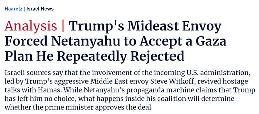 Dans un clin d’œil humoristique à la politique américaine, Biden et Trump ont chacun revendiqué séparément le mérite de l’accord de cessez-le-feu, bien que CNN affirme que les deux parties ont travaillé ensemble sur celui-ci. Gardez à l’esprit que Netanyahou a récemment suspendu son projet d’assister à l’investiture de Trump, apparemment après le refus de ce dernier – Trump a publié une vidéo de Jeffrey Sachs qualifiant Netanyahou de «sombre et profond fils de pute».