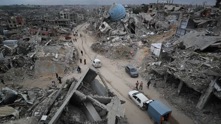 | Les Palestiniens luttent pour survivre parmi les décombres des bâtiments détruits et les tentes de fortune après le cessez-le-feu à Mashrou Beit Lahia, le 19 février 2025 |