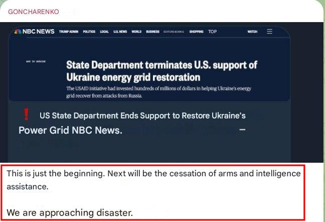 Ensuite, l’annonce que les États-Unis interrompaient la restauration du réseau énergétique de l’Ukraine :