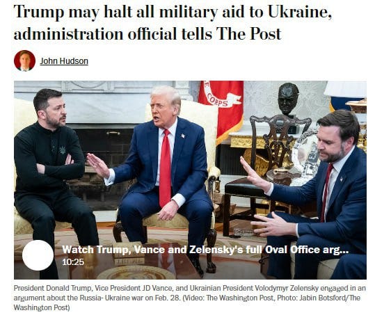 L’administration Trump envisage de suspendre toute l’aide militaire actuelle à l’Ukraine à la suite des événements survenus dans le Bureau ovale, a déclaré un haut responsable de l’administration au Washington Post.