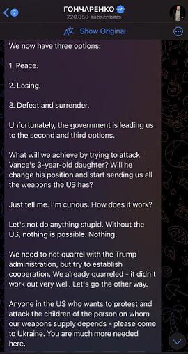 Cela soulève un point important : comment la Russie peut-elle confier ses garanties de sécurité les plus existentielles à une administration aussi changeante, qui peut promettre une chose et en livrer une autre quelques instants plus tard ? Cela ne fait que montrer que la Russie devrait ignorer toutes les ouvertures et les fioritures de Trump et de son équipe, et continuer à poursuivre la campagne jusqu’à son terme. Il n’y a tout simplement pas d’accord infaillible à conclure avec une Amérique exceptionnaliste et schizophrène au stade terminal de son arc impérial.