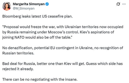 Bloomberg rapporte que les États-Unis sont « prêts à reconnaître la Crimée comme russe », mais c'est une misère comparée aux exigences complètes de la Russie, un fait que Margarita Simonyan de RT a clairement exprimé :
