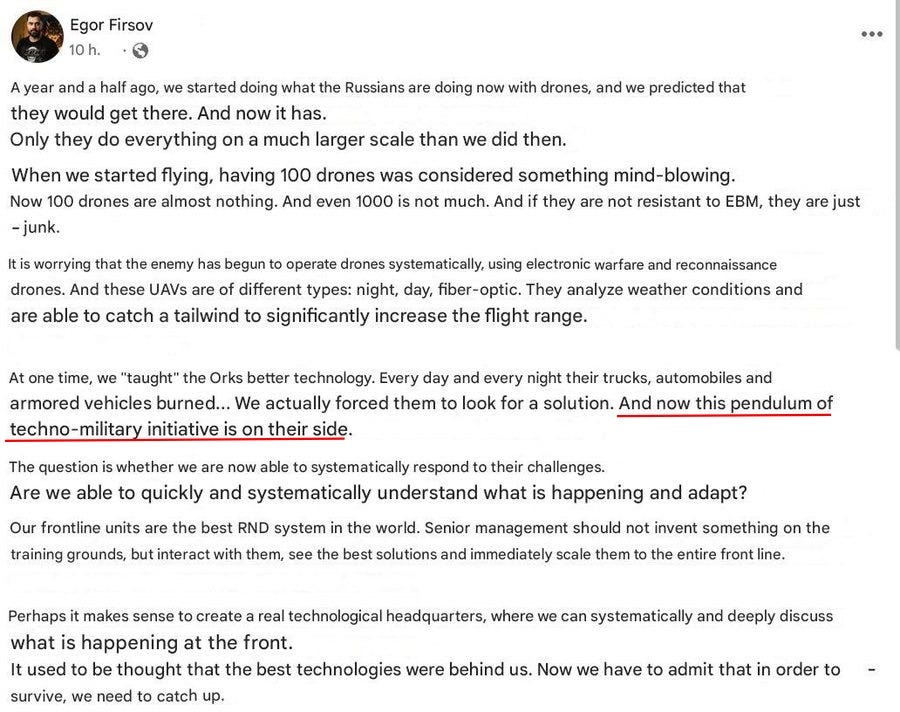 Davantage de problèmes pour l'Ukraine, car le député du peuple Egor Firsov rapporte que l'utilisation des drones russes atteint des sommets inimaginables. Il affirme clairement que l'Ukraine était autrefois à la pointe de la technologie des drones, mais que la tendance s'est inversée en Russie :