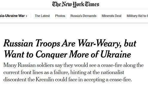 Il est intéressant de noter que le nouvel article du NYT a permis d'interroger près d'une douzaine de soldats russes sur leur point de vue concernant les négociations et un éventuel cessez-le-feu.
