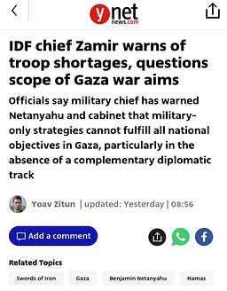 Bien qu'Israël ne s'effondre peut-être pas d'ici août, il est néanmoins confronté à toutes sortes de problèmes systémiques au sein de ses structures militaires. Il y a quelques semaines à peine, le nouveau chef d'état-major de Tsahal a mis en garde contre les problèmes persistants qui entravent la réalisation des objectifs à Gaza :