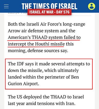 Il a été signalé que les défenses américaines et israéliennes les plus performantes n'ont pas pu arrêter les missiles, qui seraient des missiles balistiques Palestine-2, basés sur le Fateh-110 iranien: