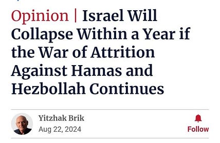 La société israélienne continue de sombrer ; la prédiction du général de division israélien à la retraite Itzhak Brik ne date que de quelques mois :