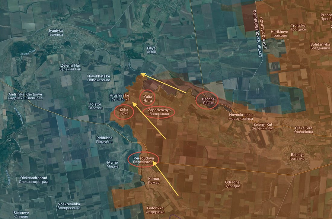 La dernière fois, nous nous étions arrêtés sur les forces russes qui venaient de libérer Komar et Perebudova. Elles ont maintenant pris plusieurs localités au nord, de Zaporojie, Yalta, à Zirka, le long de la rivière Mokry Yaly.