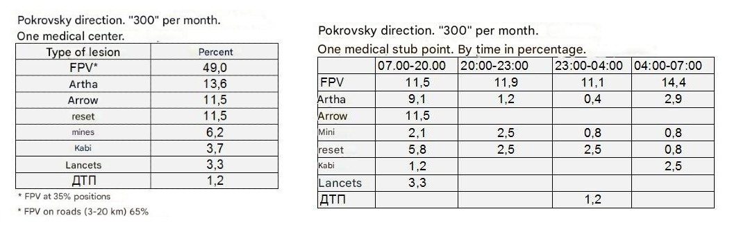 À ce sujet, voici des statistiques récentes d'une unité ukrainienne en direction de Pokrovsk concernant ses « 300 » blessés, ventilées par type de munition :