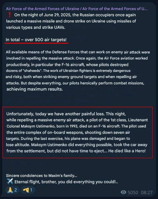 Un autre F-16 a même été abattu en tentant d'abattre les drones.