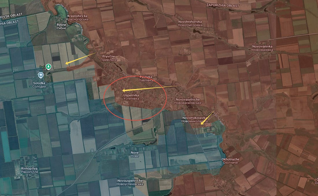 Un examen plus attentif révèle que la ville d'Uspenovka, et notamment ses environs, sont pris d'assaut :