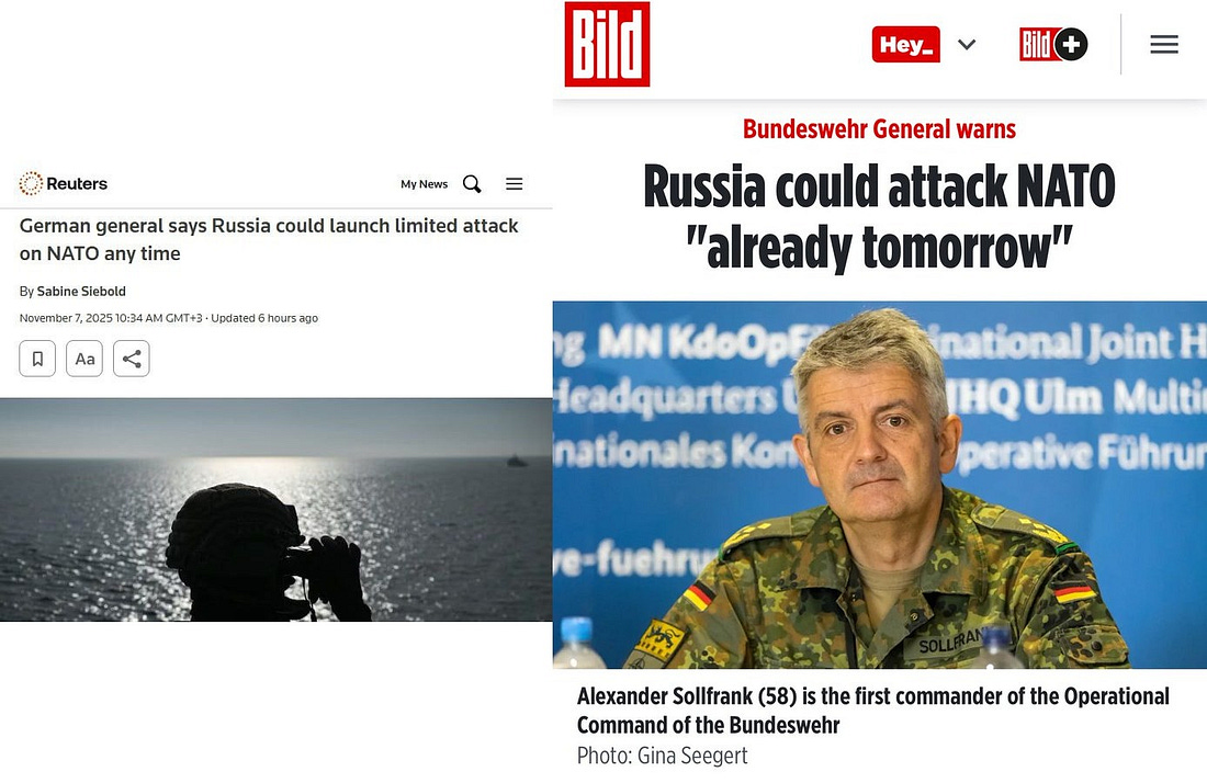 Ce nouvel appel désespéré aux armes a été suivi d'une avalanche d'articles faisant état d'une prétendue attaque russe imminente contre l'OTAN — car, vous savez, une nation embourbée dans une « guerre sans fin » catastrophique en Ukraine ne voudra logiquement que s'enliser encore plus en attaquant directement l'alliance militaire « la plus puissante » de l'histoire :