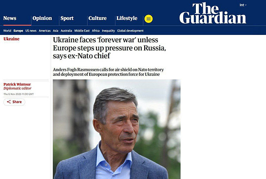 En réalité, un Fogh à l'air absent a été exhibé lors d'une tournée de presse entière pour promouvoir la guerre contre la Russie. On l'a notamment vu insister sur le déploiement immédiat des troupes de l'OTAN « derrière la ligne de front » en Ukraine.
