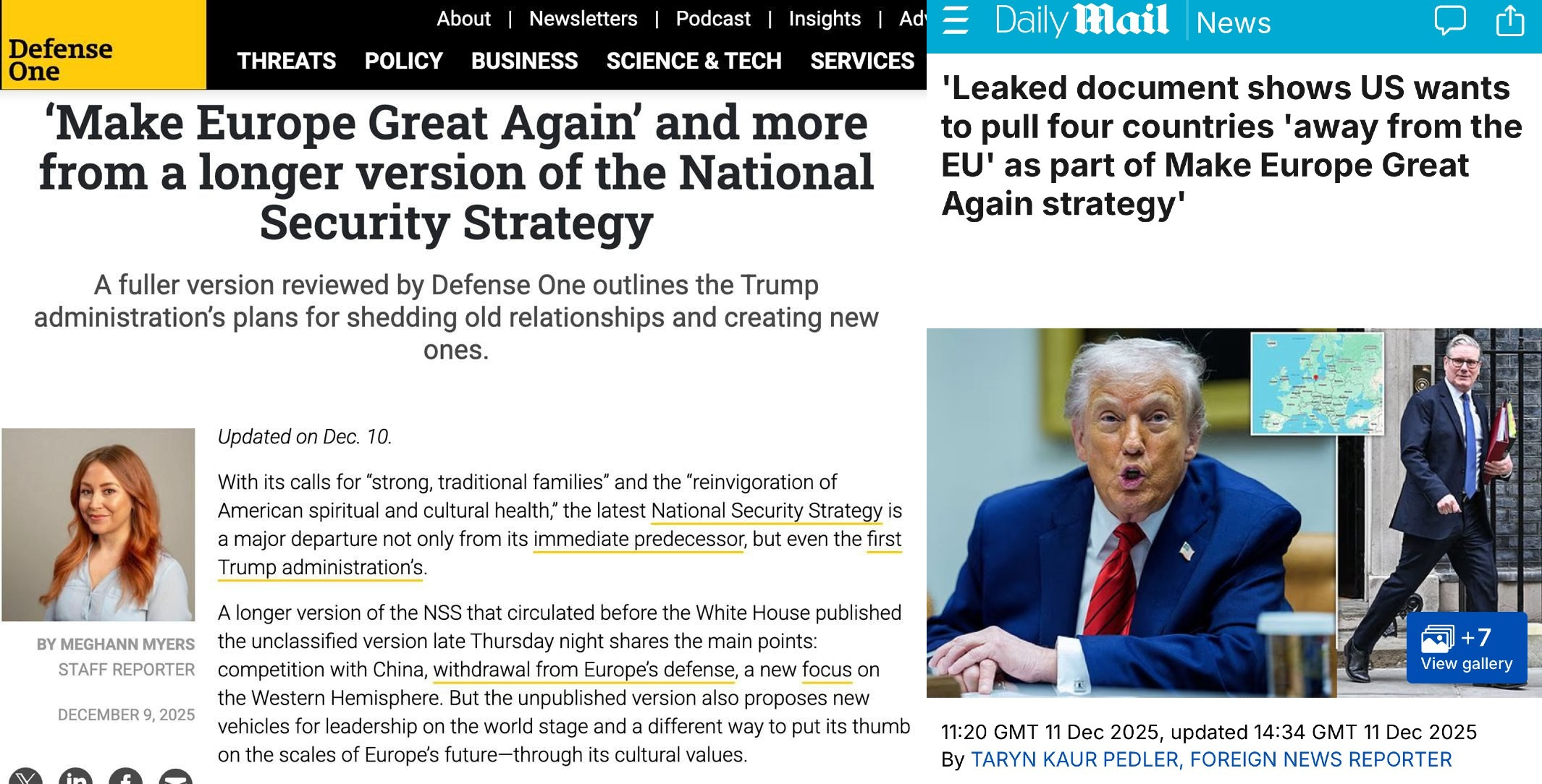 Zelensky envisagerait désormais d'organiser un référendum sur la cession du Donbass afin d'apaiser Trump et son nouveau « plan de paix ». Le problème est que la question du Donbass ne représente qu'un aspect mineur des désaccords plus larges liés aux exigences de la Russie. Il pourrait toutefois s'agir d'une manœuvre pour contraindre la Russie à un cessez-le-feu, puis sceller la guerre avec l'intervention de l'OTAN, étant donné que Poutine a déclaré qu'il mettrait fin aux hostilités si l'Ukraine se retirait des territoires restants du Donbass. Certains se souviendront peut-être que j'avais qualifié cette initiative de coup de maître de Poutine, mais Zelensky, aux abois, pourrait être tenté de le prendre au mot en organisant un référendum.
