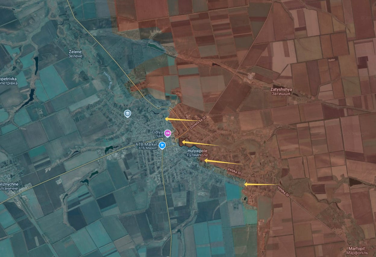 À Gulyaipole, les troupes russes ont percé les lignes ennemies jusqu'au centre-ville et semblent avoir capturé au moins 35 à 40 % de la ville jusqu'à présent, voire plus :