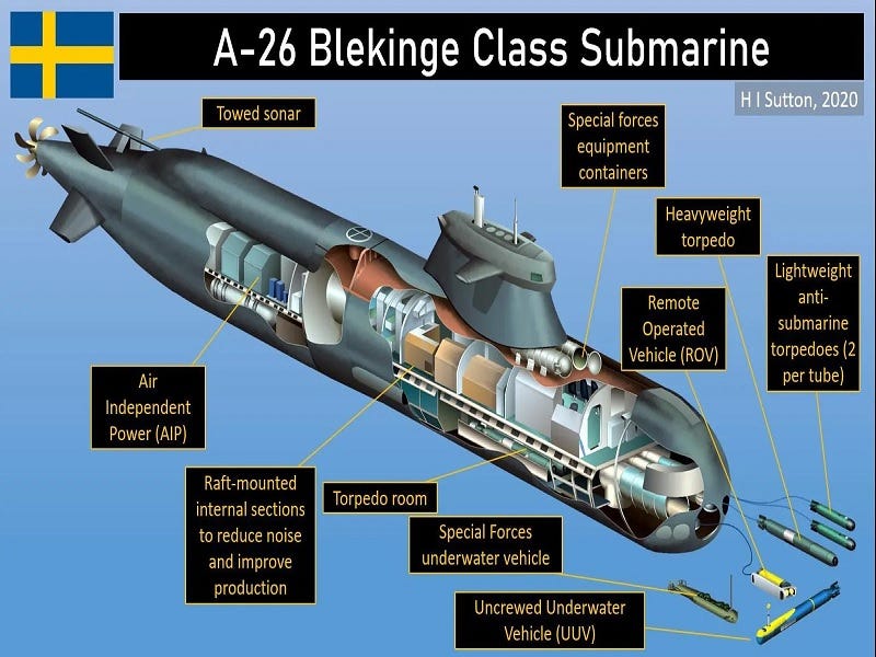 Le ministre polonais de la Défense a annoncé fin novembre que son pays allait acquérir trois sous-marins diesel-électriques de classe Blekinge (A26) auprès de la Suède, pour un montant estimé à un peu moins de 2,5 milliards d'euros. Cette annonce intervient quelques mois seulement après leur premier exercice conjoint, qui laissait présager une coopération renforcée face à la Russie en mer Baltique, et fait suite à des pressions exercées par le Royaume-Uni en faveur de la Suède face à d'autres candidats, l'une de ses entreprises de défense devant tirer profit de ce contrat.