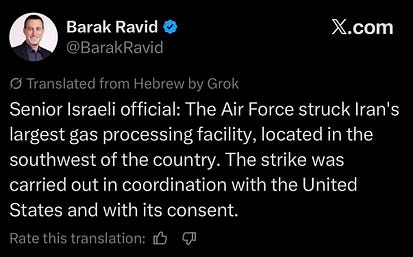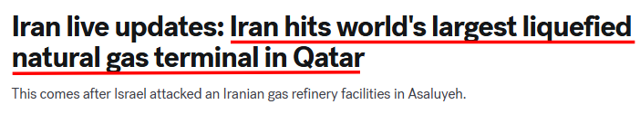 La situation a dégénéré aujourd'hui après la frappe israélienne sur le plus grand gisement de gaz naturel iranien, South Pars. Ce gisement représente 75 % de la production de gaz naturel du pays et alimente entre 80 et 85 % de son réseau électrique.