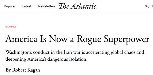 Kagan lui-même a désormais publié une tribune dans The Atlantic qualifiant ouvertement les États-Unis d'État voyou :